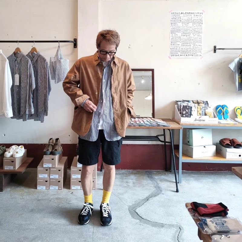 素材の持つ匂いを活かすことを第1に考え、それに見合った縫製技術、ディティール、付属を当て込んだミニマルデザイン+αでワードローブに残る物作りを目指したブランドです。モデル:あれっ?(もう金髪じゃねぇ??)の、店主 172cm,57kg/着用サイズ:M