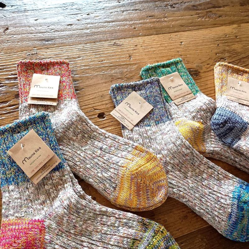 マウナケア、到着。 2025-09-21 16:12 [ mauna kea ] これからのシーズンに合わせて(タイミングよく!)「マウナケア」のソックスも届きましたよ。 かわいい配色と、独特の杢感がおすすめのソックスです。(ギフトにもおすすめですよ!) ・・よろしければ、足もとから(衣替えに!?)是非。 ツイスター3面杢 ¥1.650(¥1.500 + tax)size/LADY’S(23~25), MEN’S(25~27)col/Yellow, Red, Green, Blue, Purple